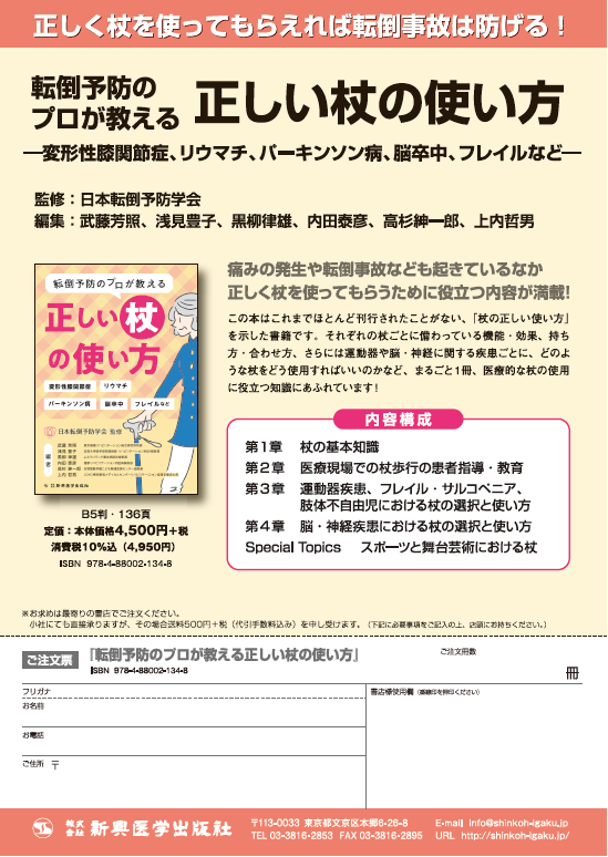 『転倒予防のプロが教える 正しい杖の使い方―変形性膝関節症、リウマチ、パーキンソン病、脳卒中、フレイルなど―』 ★注文票はこちらをクリック
